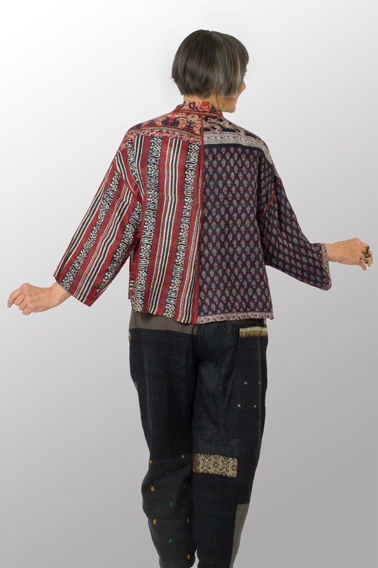 VINTAGE SILK PATCH KANTHA SHORT JACKET - vp2007-cor -