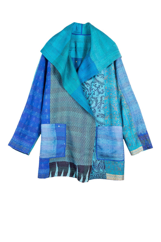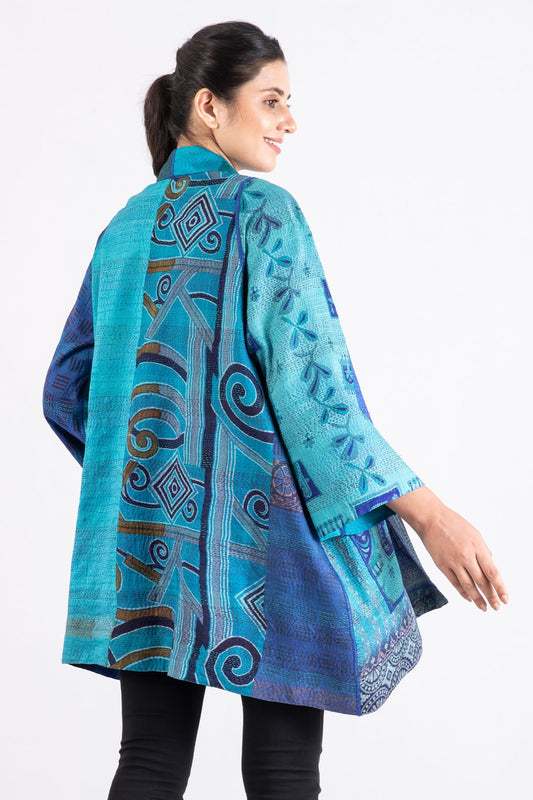 VINTAGE SILK PATCH KANTHA A-LINE JKT - vp2003-blu -