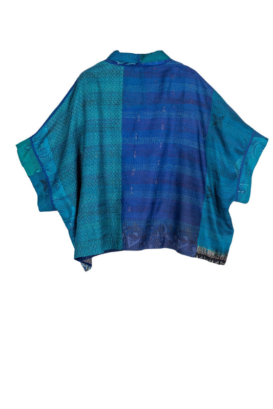 VINTAGE SILK PATCH KANTHA MINI PONCHO - vp2060-blu -