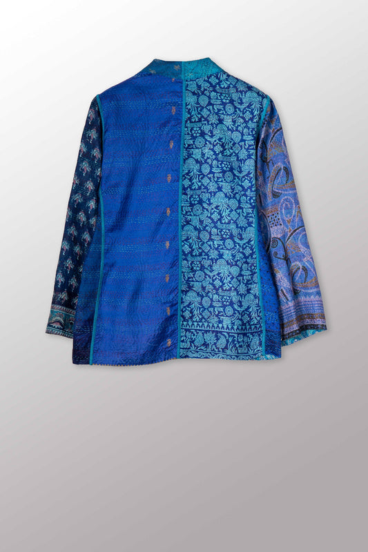 VINTAGE SILK PATCH KANTHA POCKET JKT - vp2002-blu -