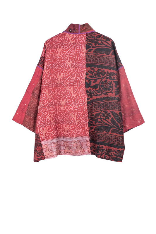 VINTAGE SILK PATCH KANTHA MINI KIMONO JKT - vp2055-red -
