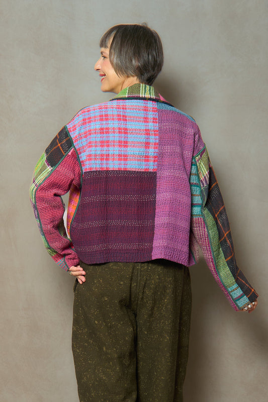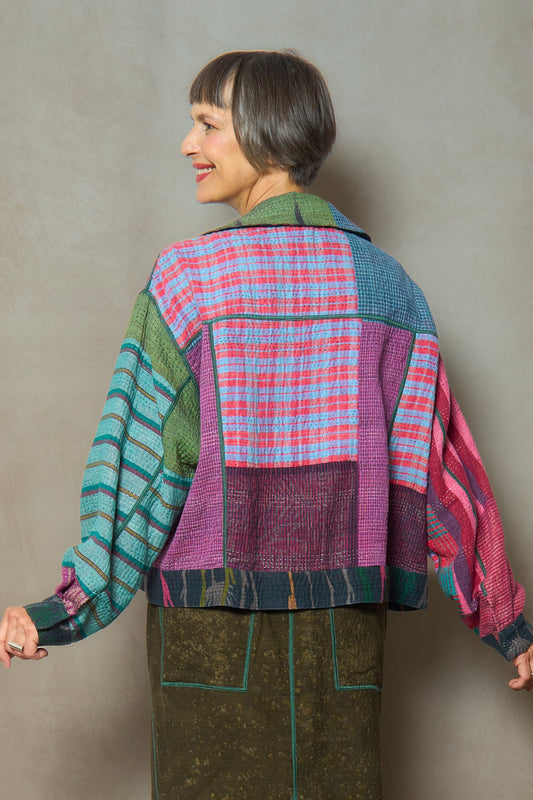 DUCK SUN DYE WITH PATCH KANTHA SLEEVE JACKET - us2090-grn -