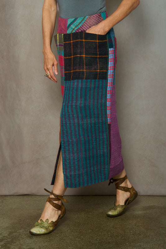 MARBLE FRAY PATCH KANTHA PONCHO TOPPER - mf2356-grn -