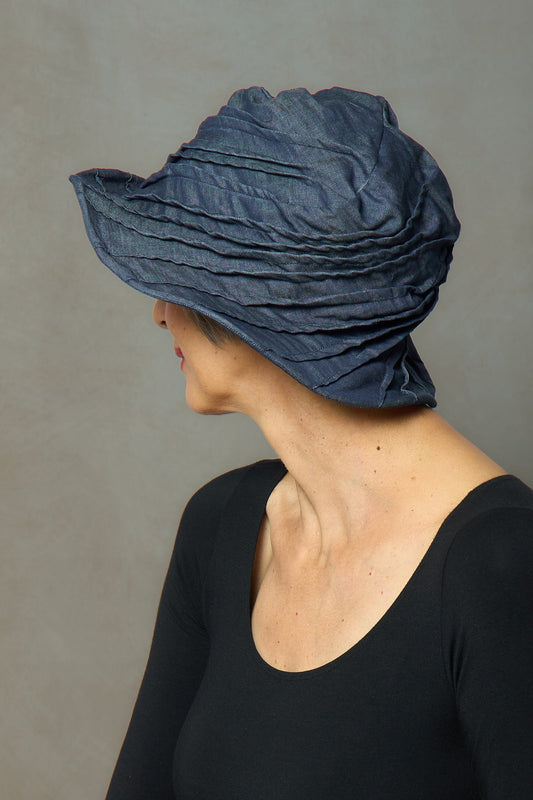LIGHT DENIM TWIST TUCKED BRIM HAT - ld1886-nvy -