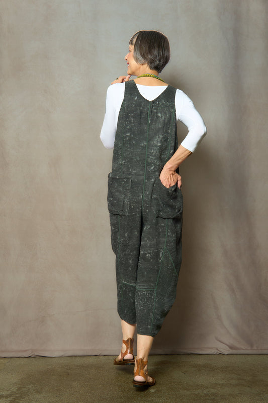 SAND SUN DYE RIPPLE KANTHA TUCKED GATHER PANTS - rs2677-grn -
