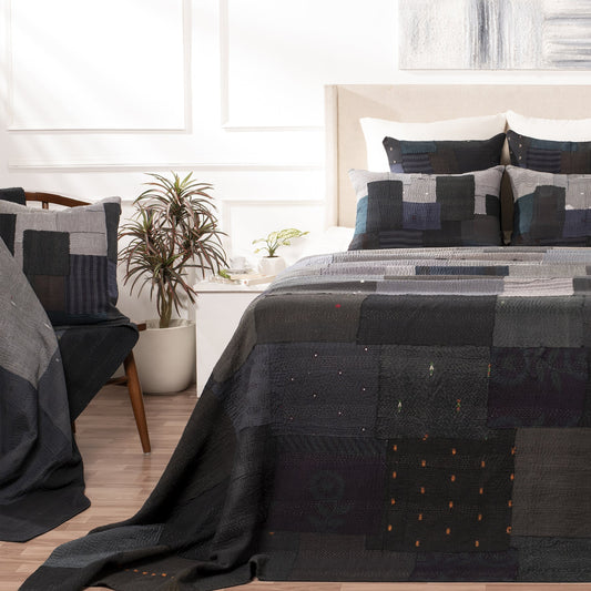Night Sky Fray Patch Kantha Throw