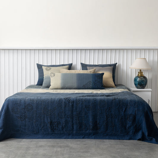 Landscape Fray Patch Handmade vintage Kantha Quilts - Navy