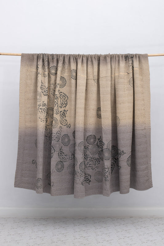 Ombre fray patch kantha quilt Yellowstone -gray