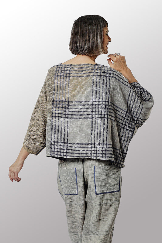 KIMONO COTTON KANTHA CROPPED TENT SHIRT - kc2596-org -