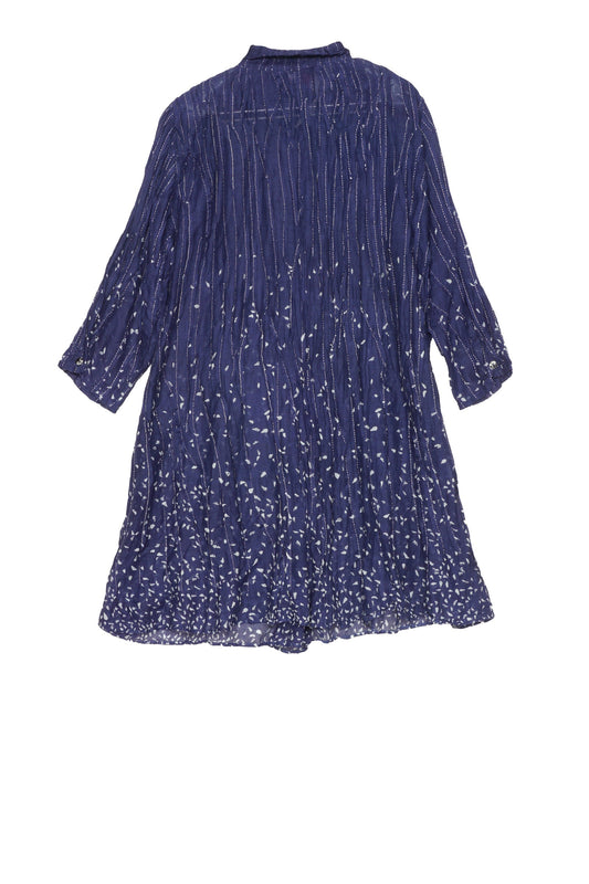 INDONESIAN PRINT VINTAGE INDIGO BACKING KANTHA CROPPED TENT SHIRT - bi2596-blu -