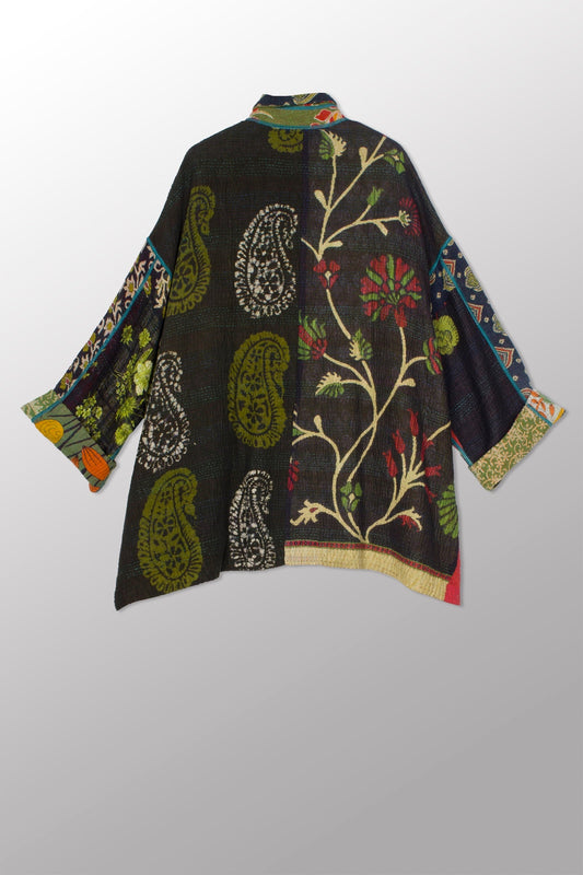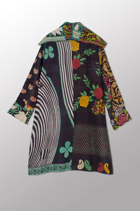 PUZZLE KANTHA OVERSIZED MINI COAT - pz4332-grn -