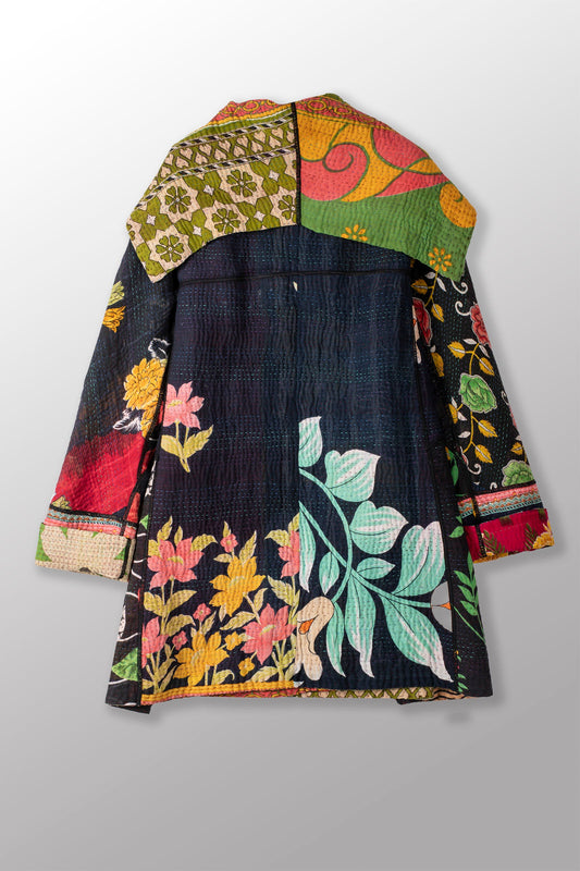 QUILTED OVERDYE COTTON KANTHA FUNNEL COLLAR COAT - oq5312-cred003a -
