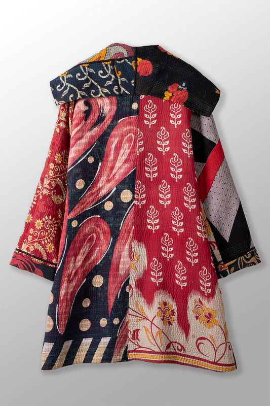 PUZZLE KANTHA OVERSIZED MINI COAT - pz4332-red -