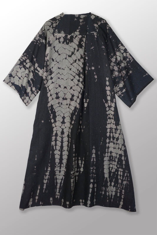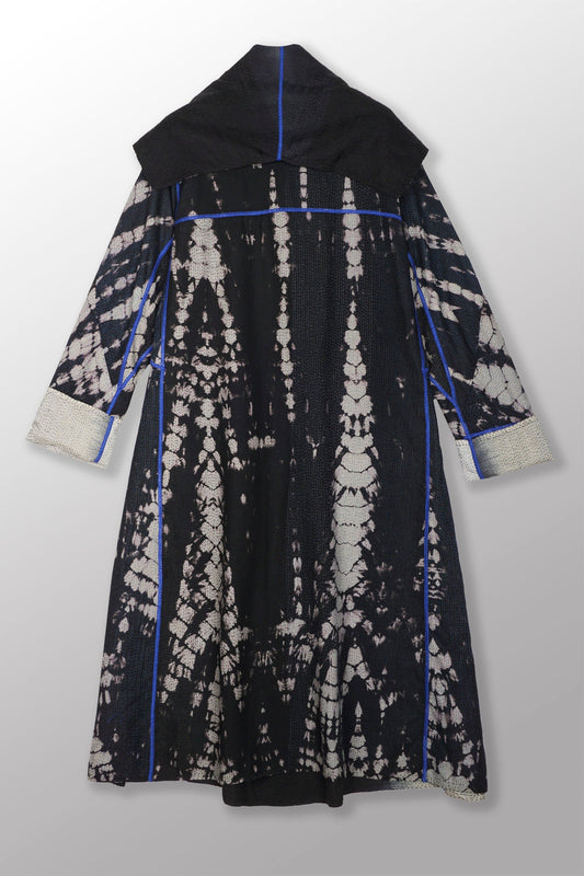 SHIBORI JACQUARD KANTHA A-LINE DUSTER - sj4311-blk -