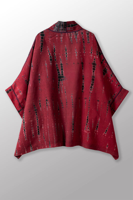 SERPENT SHIBORI TIE DYE KANTHA OVERSIZED MINI COAT - se4332-org -