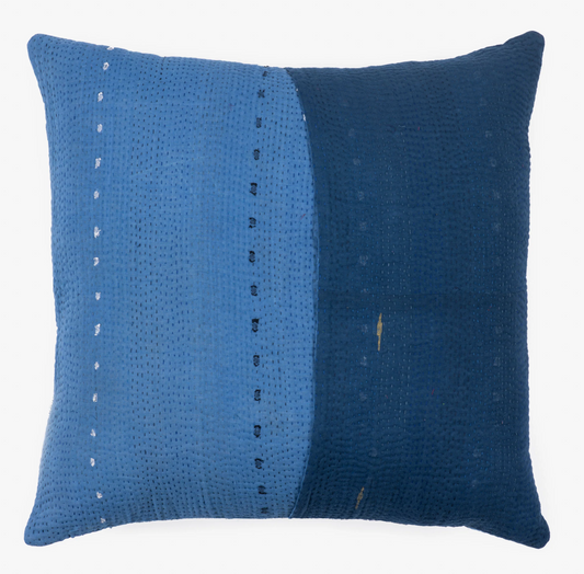 Vintage Fray Patch & Ombre Kantha Pillow Sham -Indigo -