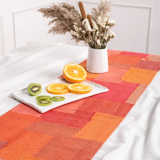 Mosaic Fray Handmade Vintage Kantha Table Runner -Carrots -