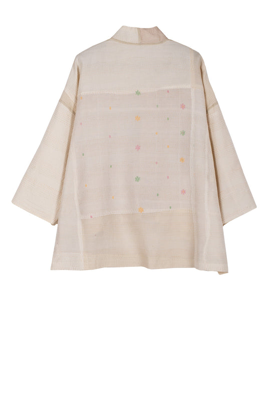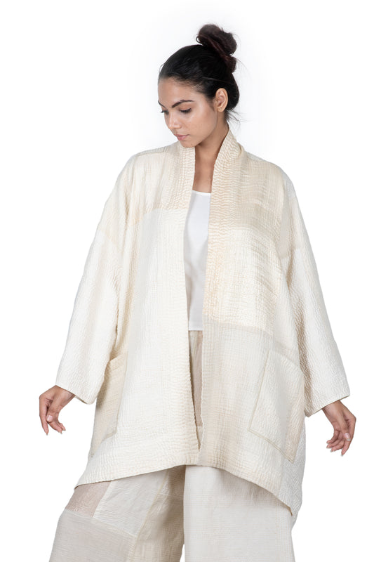 JAIPUR WHITE KANTHA HAORI JACKET - jw4068-ivy -