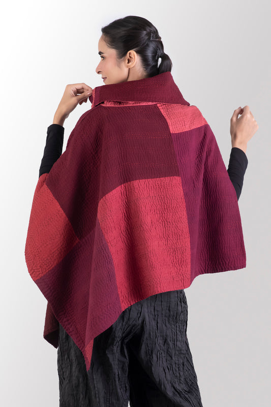 JAIPUR PATCH KANTHA COWL NECK LONG CAPE - jp4842-red -