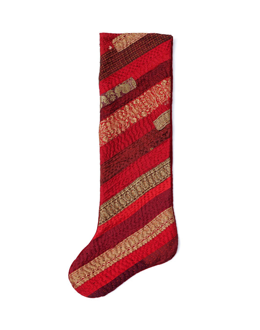 JACQUARD SILK KANTHA TIE-BEADS LONG NECKLACE - js2707-red -