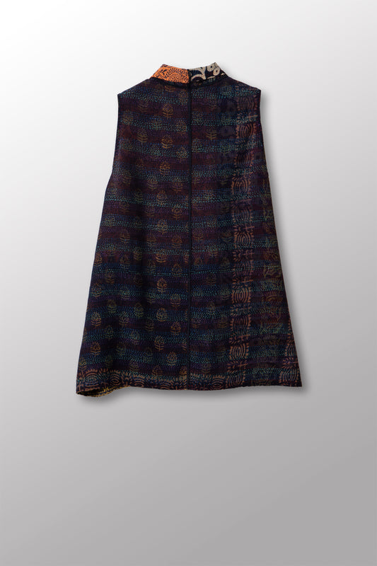 VINTAGE SILK GEORGETTE COTTON KANTHA MINI PONCHO - gc2060-0001a -