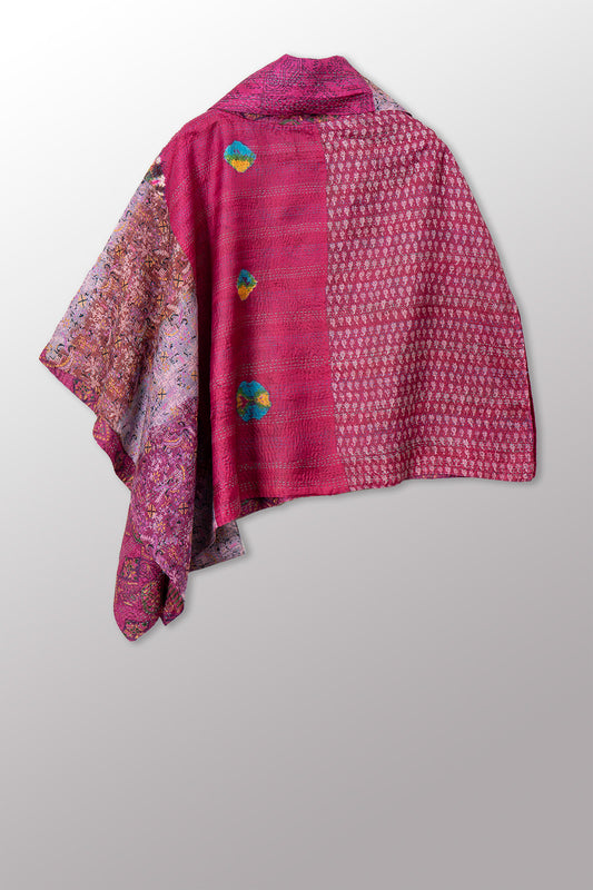VINTAGE SILK KANTHA LONG CAPE - sv2841-0010a -