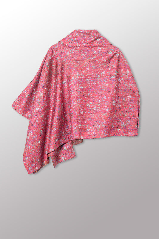 VINTAGE SILK KANTHA COWL NECK LONG CAPE - sv2842-0020a -