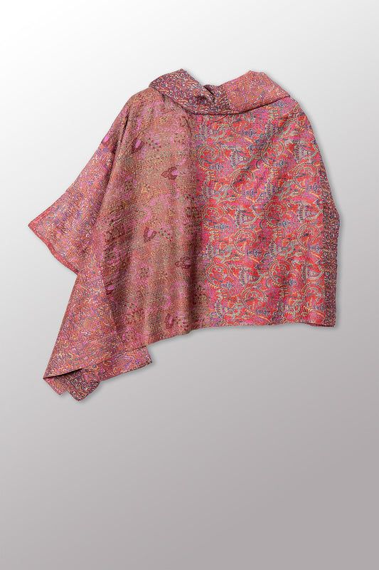 VINTAGE SILK KANTHA COWL NECK LONG CAPE - sv2842-mlt -