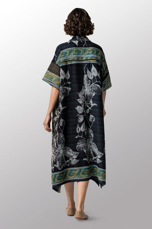 ORGANIC LEAVES KANTHA HALF SLV. SHIRT DRESS - ol2429-blk -