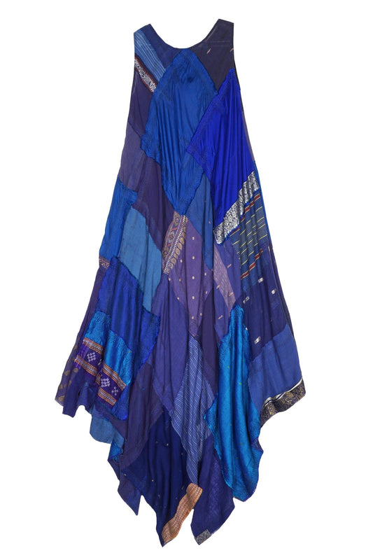 MOSAIC TILE PATCH KANTHA FULL CIRCULAR DRESS MAXI - mt1422-blu -