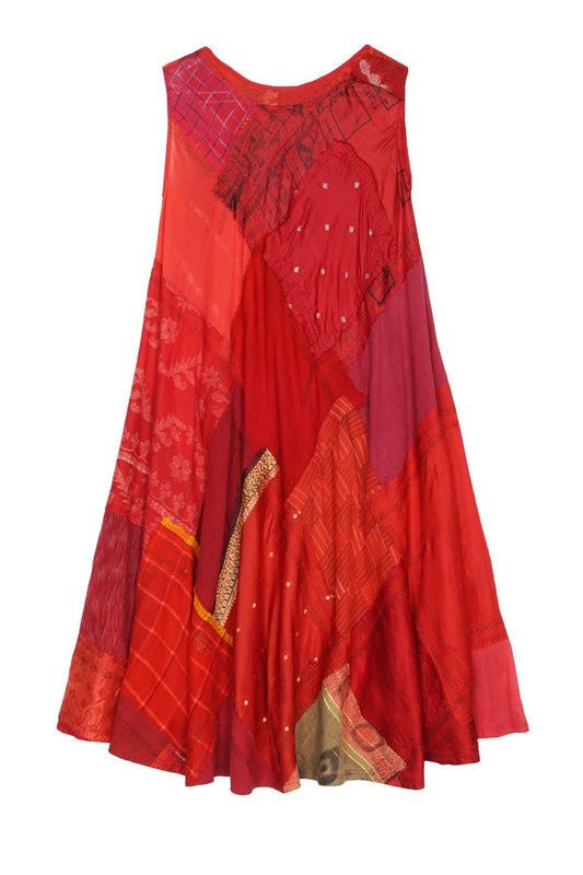MOSAIC TILE PATCH KANTHA FULL CIRCULAR DRESS CITY - mt1421-red -