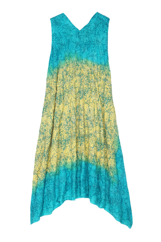 OMBRE MUD DYE SHIBORI KANTHA TENT DRESS - md1413-ylw -