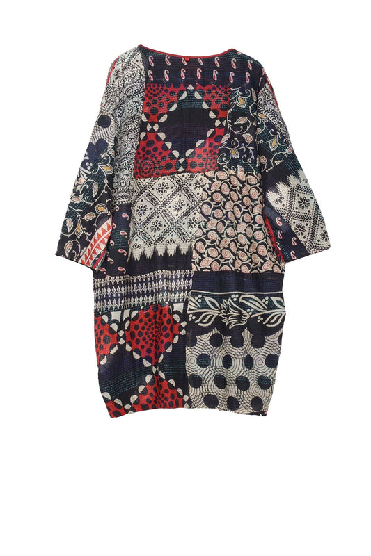 PATCH & CIRCLE PRINT KANTHA DOLMAN SLV. DRESS - pc2410-blk -