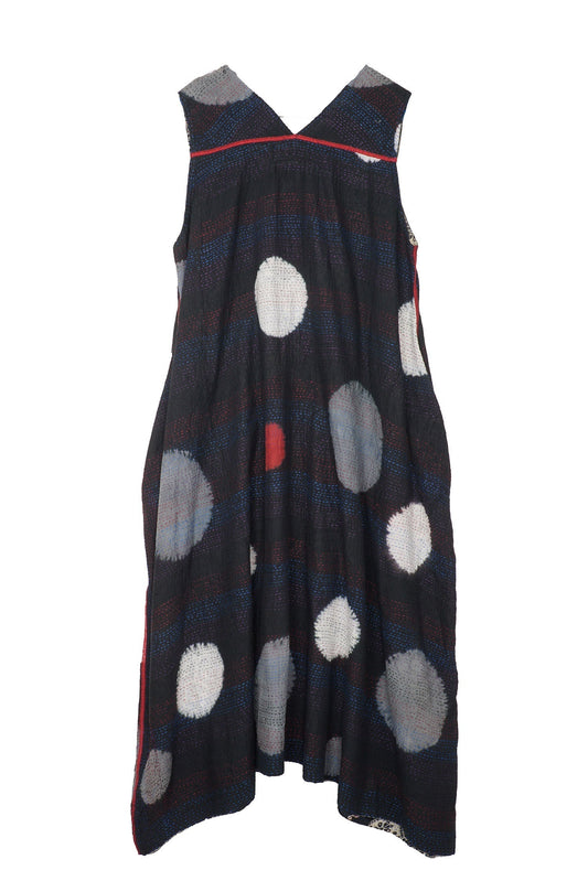 PATCH & CIRCLE PRINT KANTHA TENT DRESS - pc2413-blk -