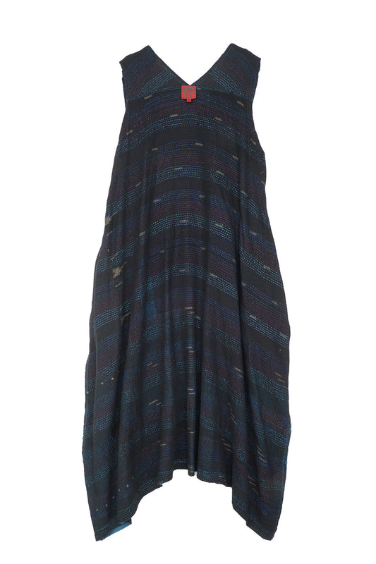 LANDSCAPE FRAYED PATCH KANTHA TENT DRESS - lf2413-blu -
