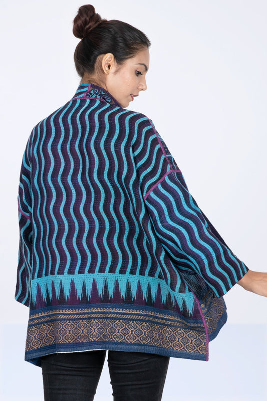 DESERT WAVES KANTHA MINI KIMONO JKT - dw2055-blu -