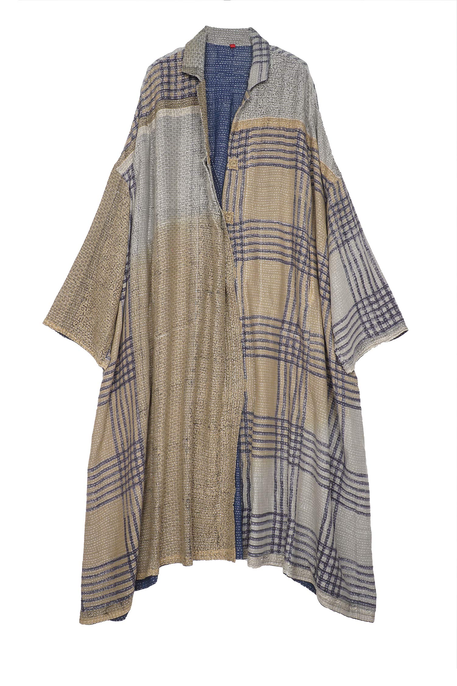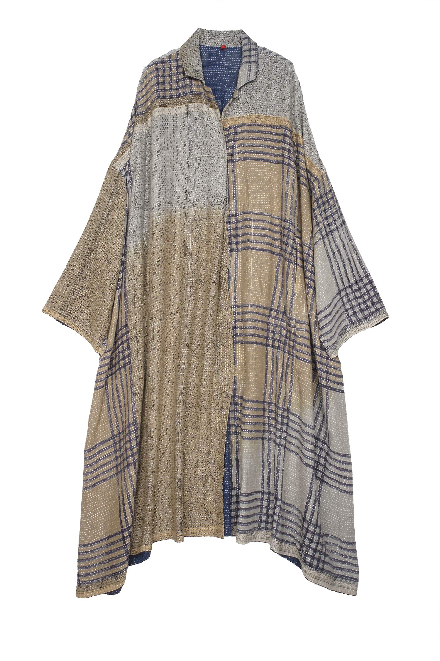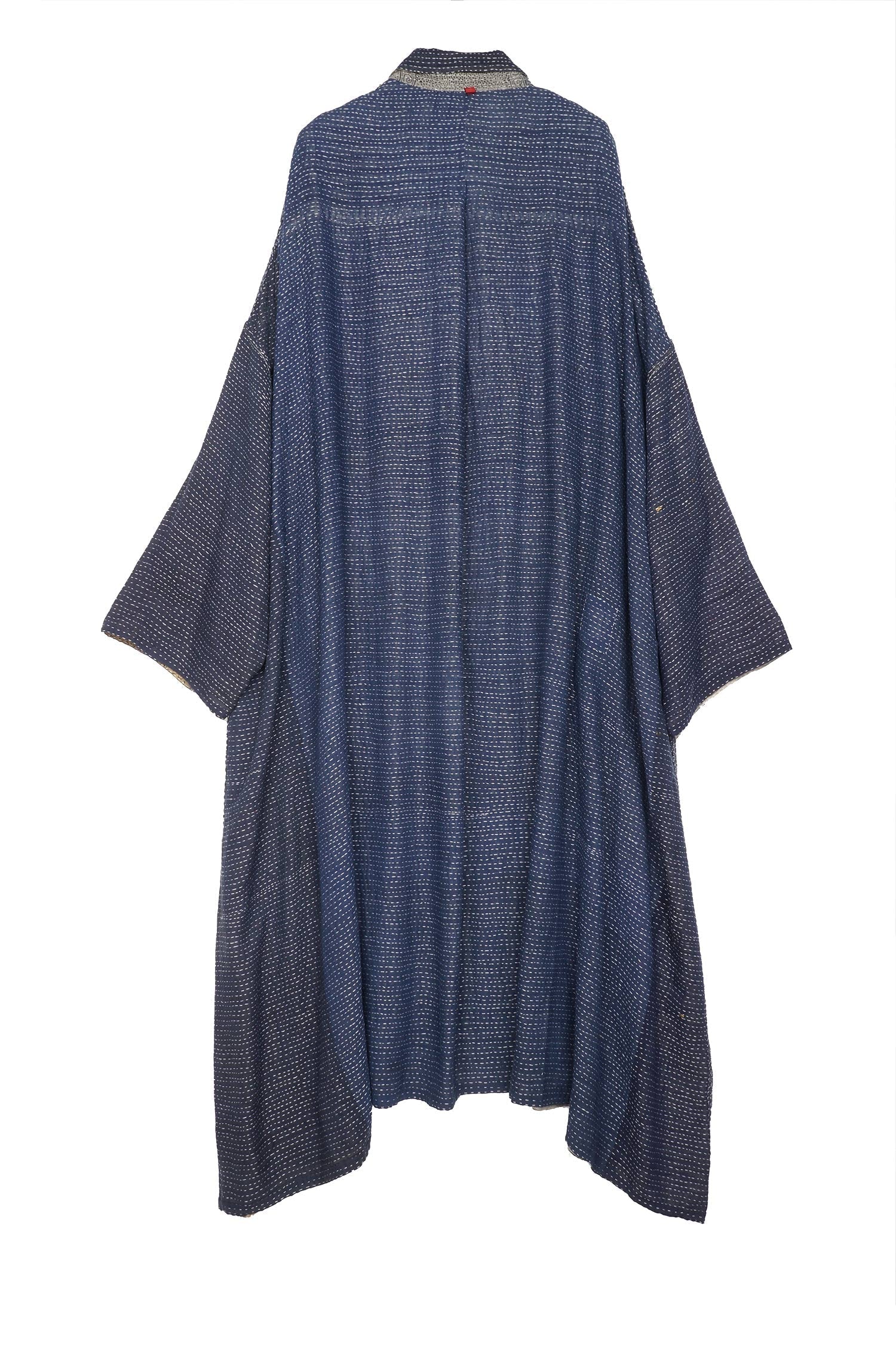 INDONESIAN PRINT VINTAGE INDIGO BACKING KANTHA OVERSIZE DRESS - bi2432-blu -