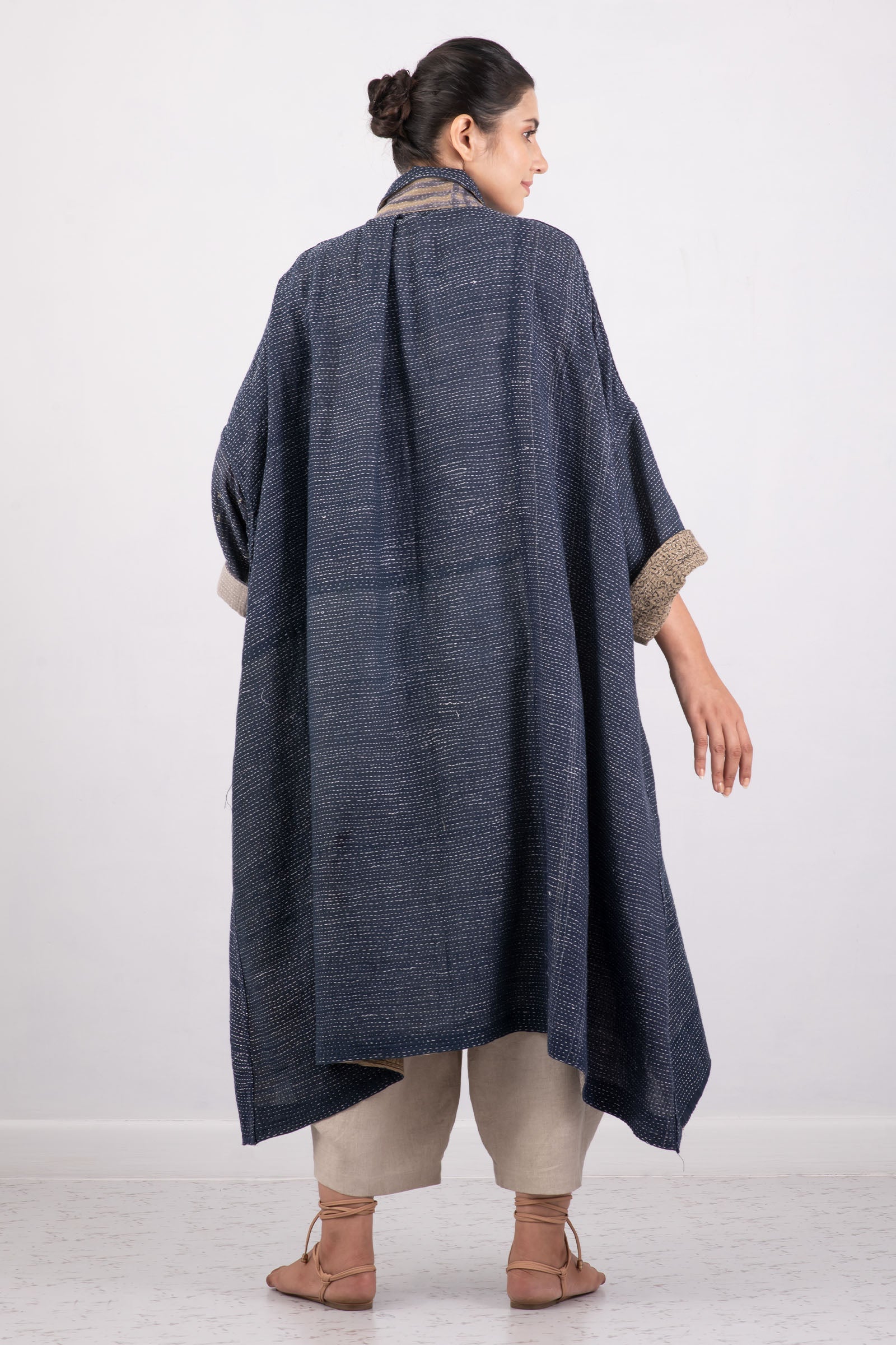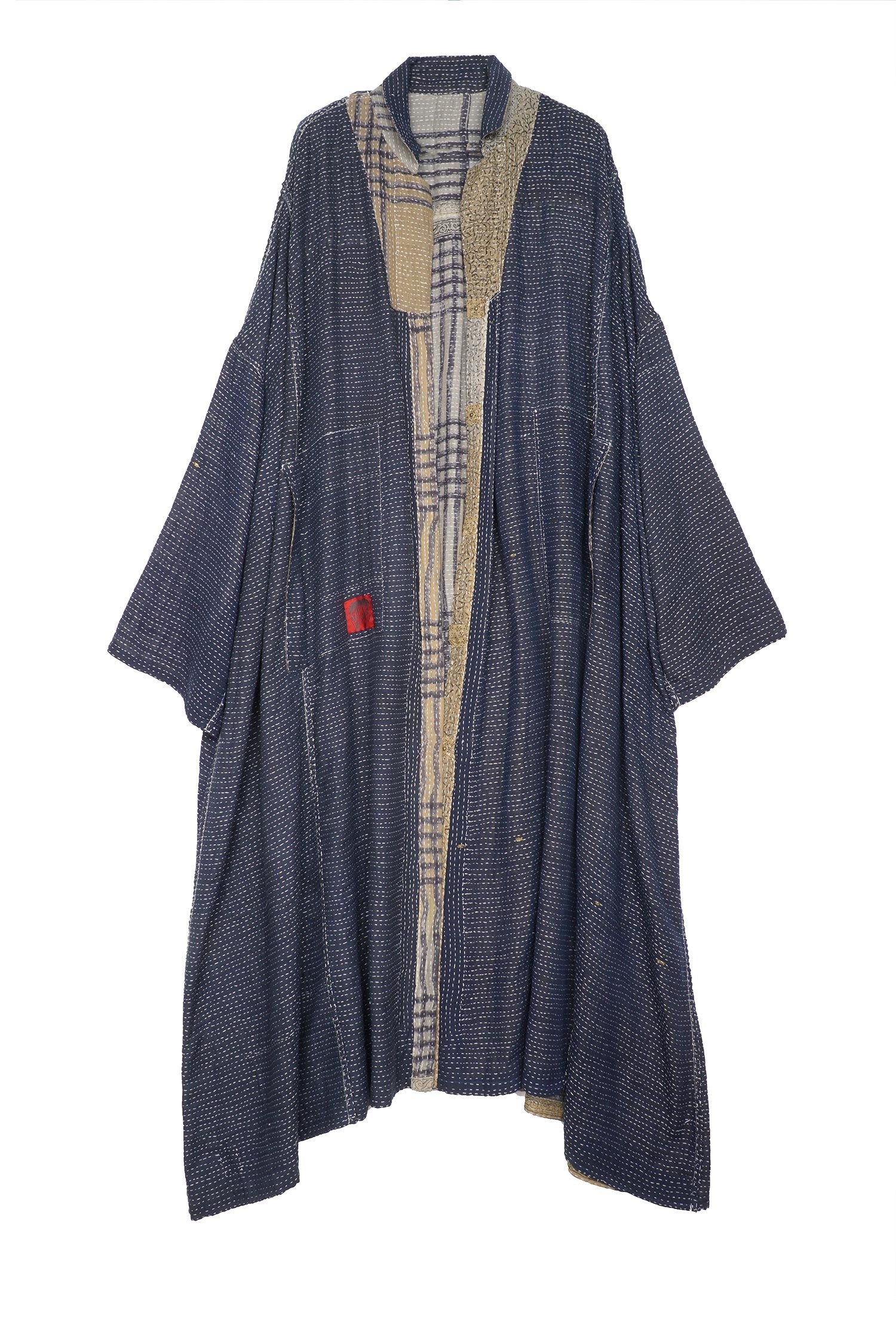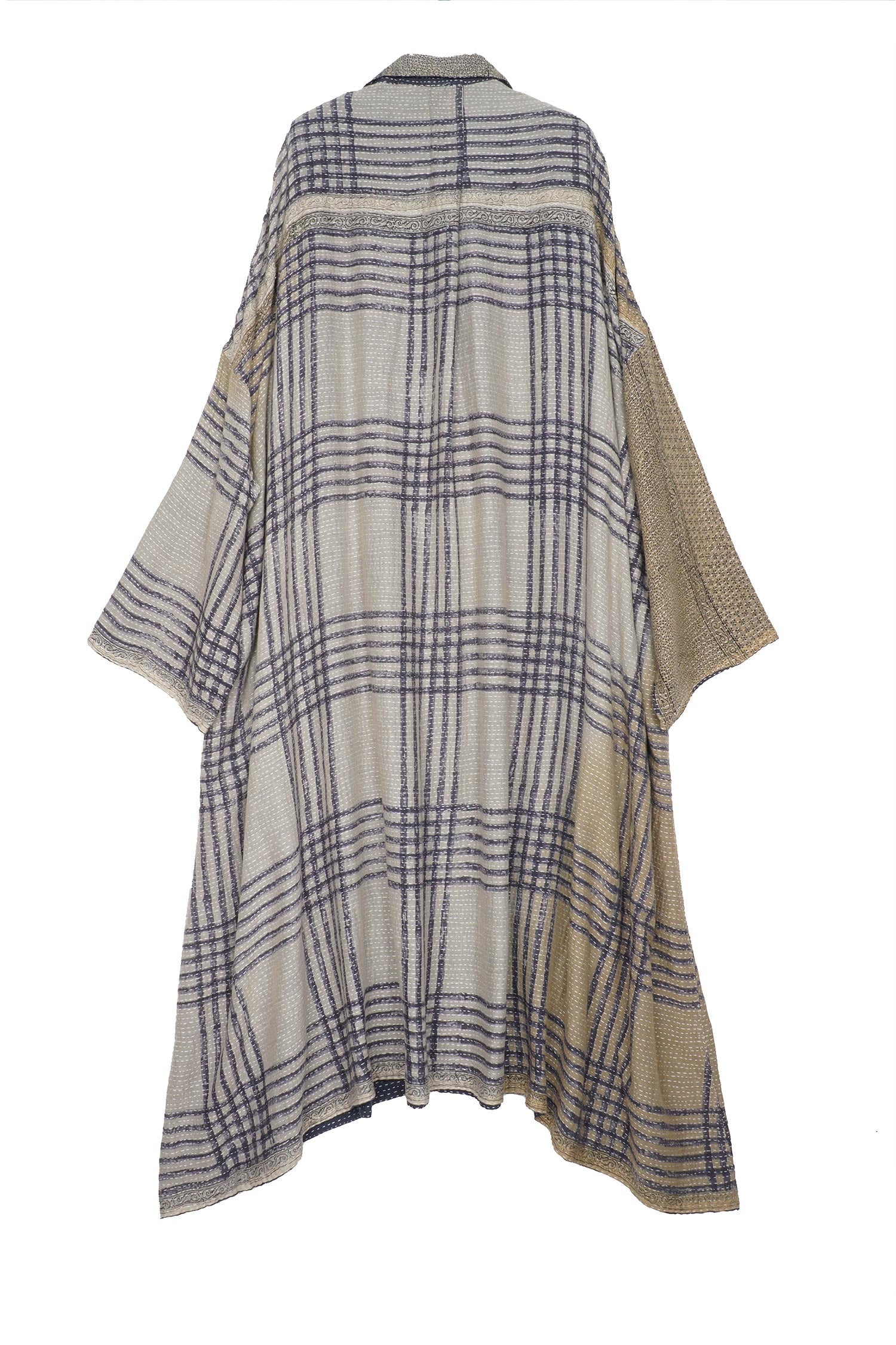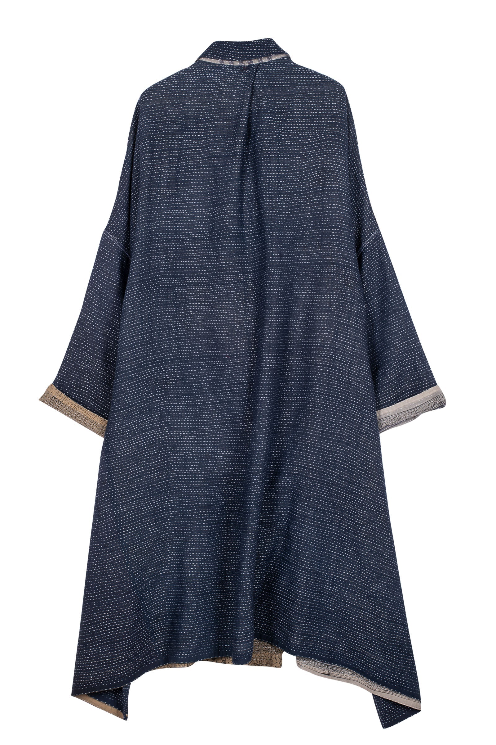 INDONESIAN PRINT VINTAGE INDIGO BACKING KANTHA OVERSIZE DRESS - bi2432-blu -