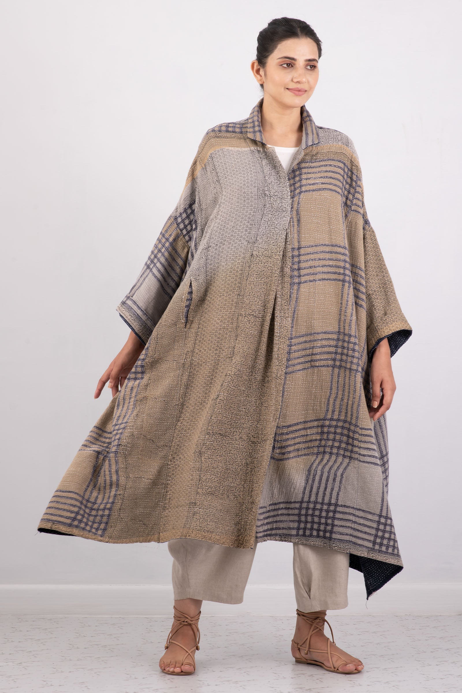 2 Layer Vintage Saris with Hand Stitches on Entire Garment - Reversible