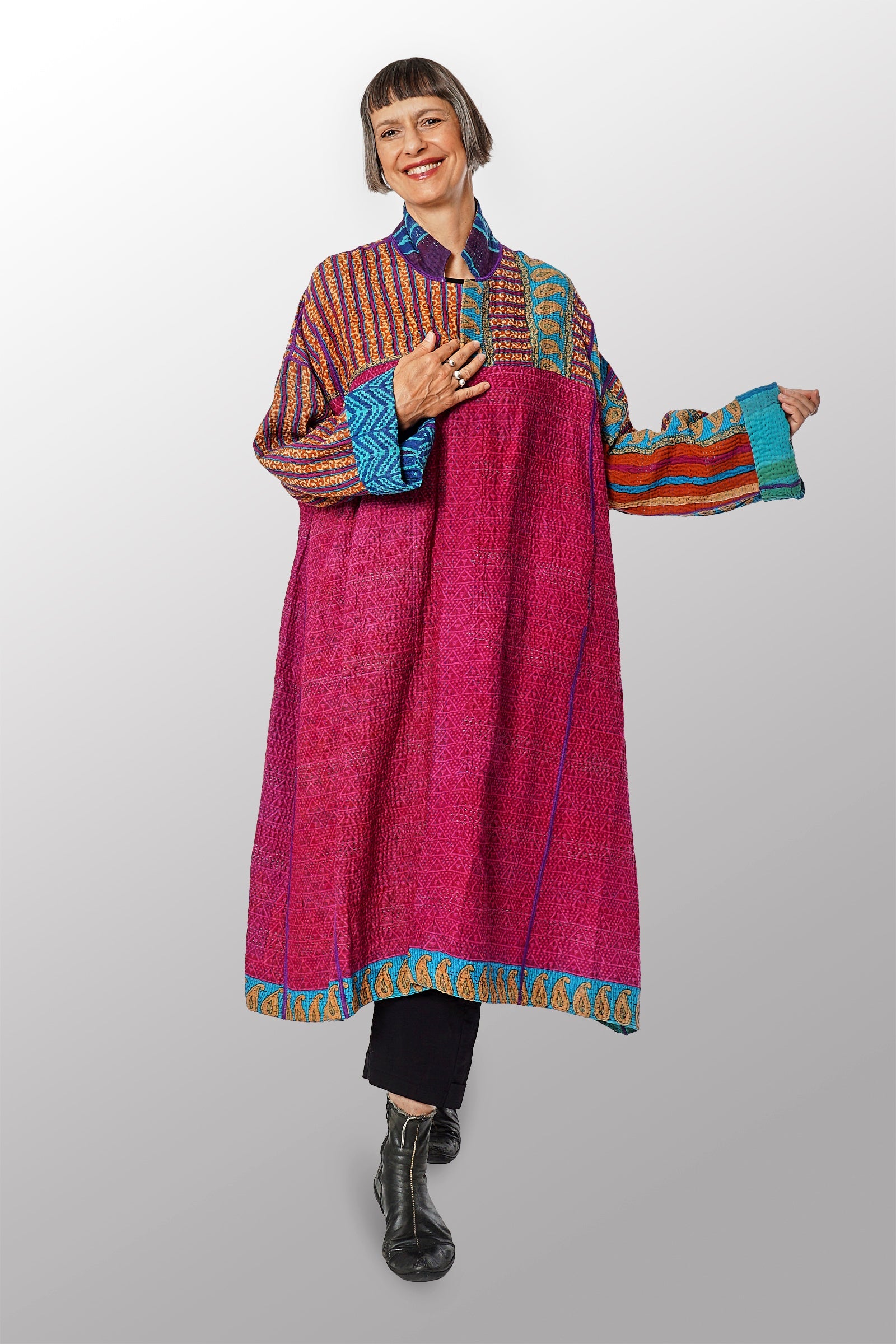 COTTON OVERDYE KANTHA NEW OVERSIZED COAT - ov4342-ctel003a -