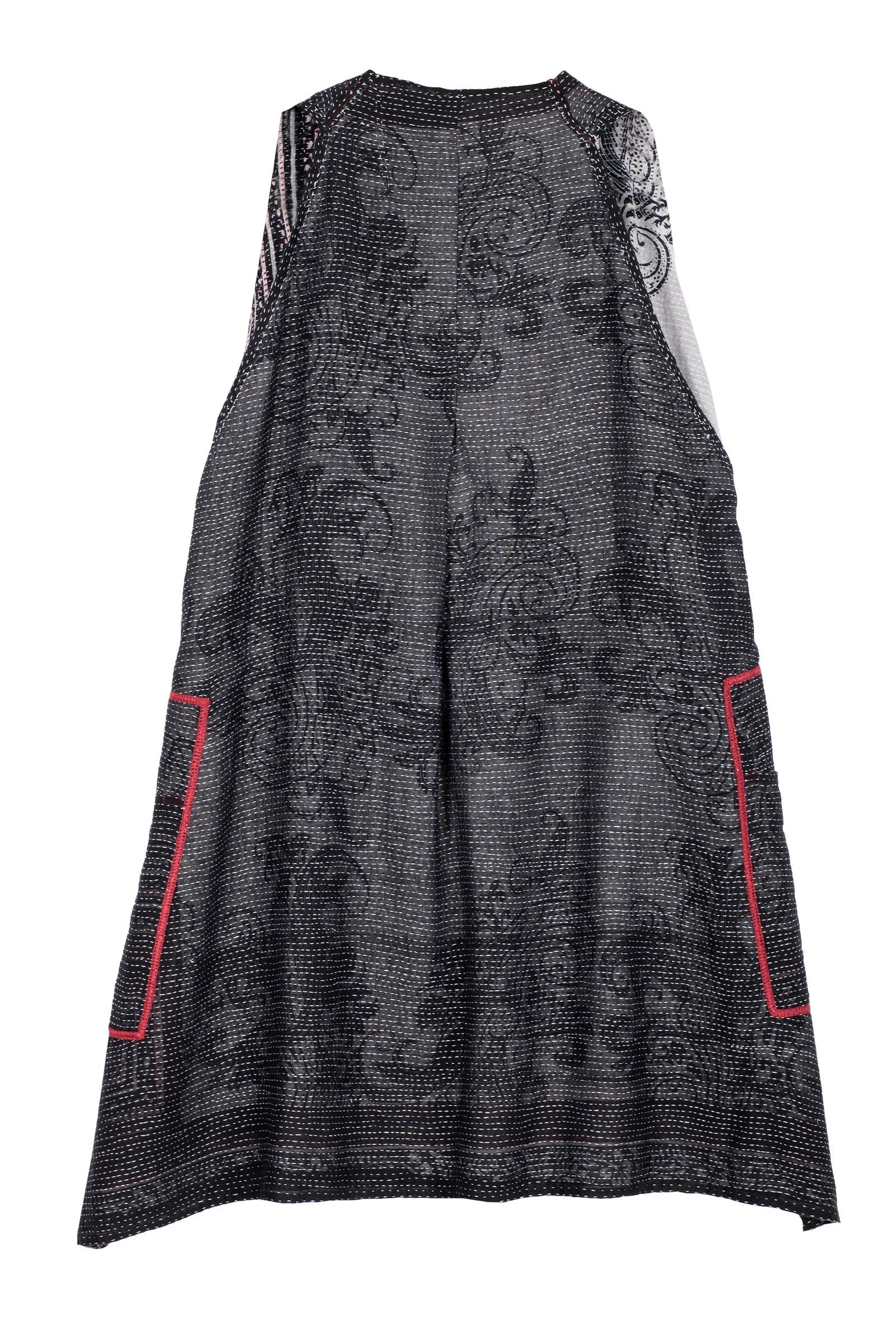 COTTON PAISLEY KANTHA BACK PLEATED VEST - cp2221-wht -