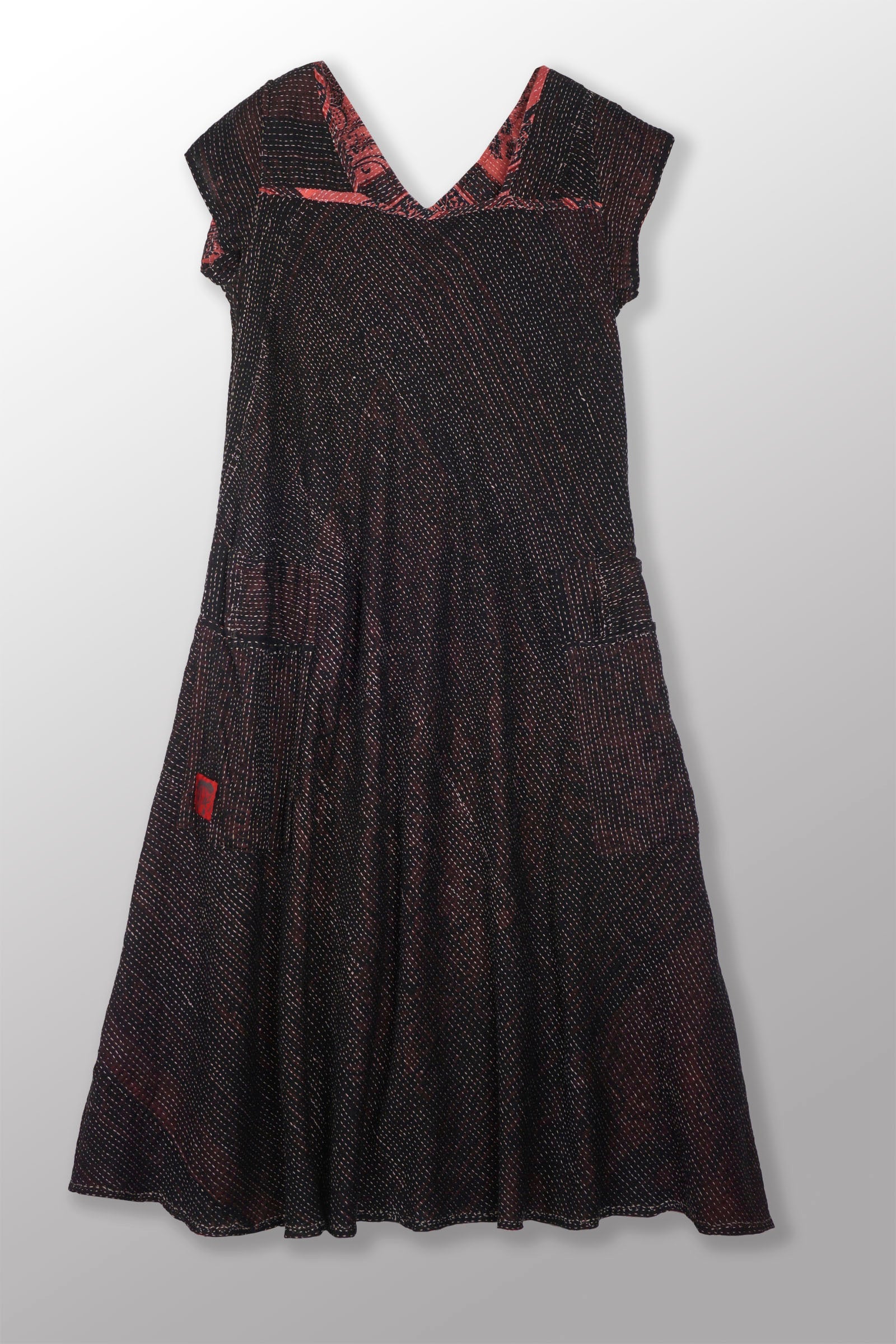 COTTON PAISLEY KANTHA SQUARE NECK FLARE DRESS - cp2431-pik -