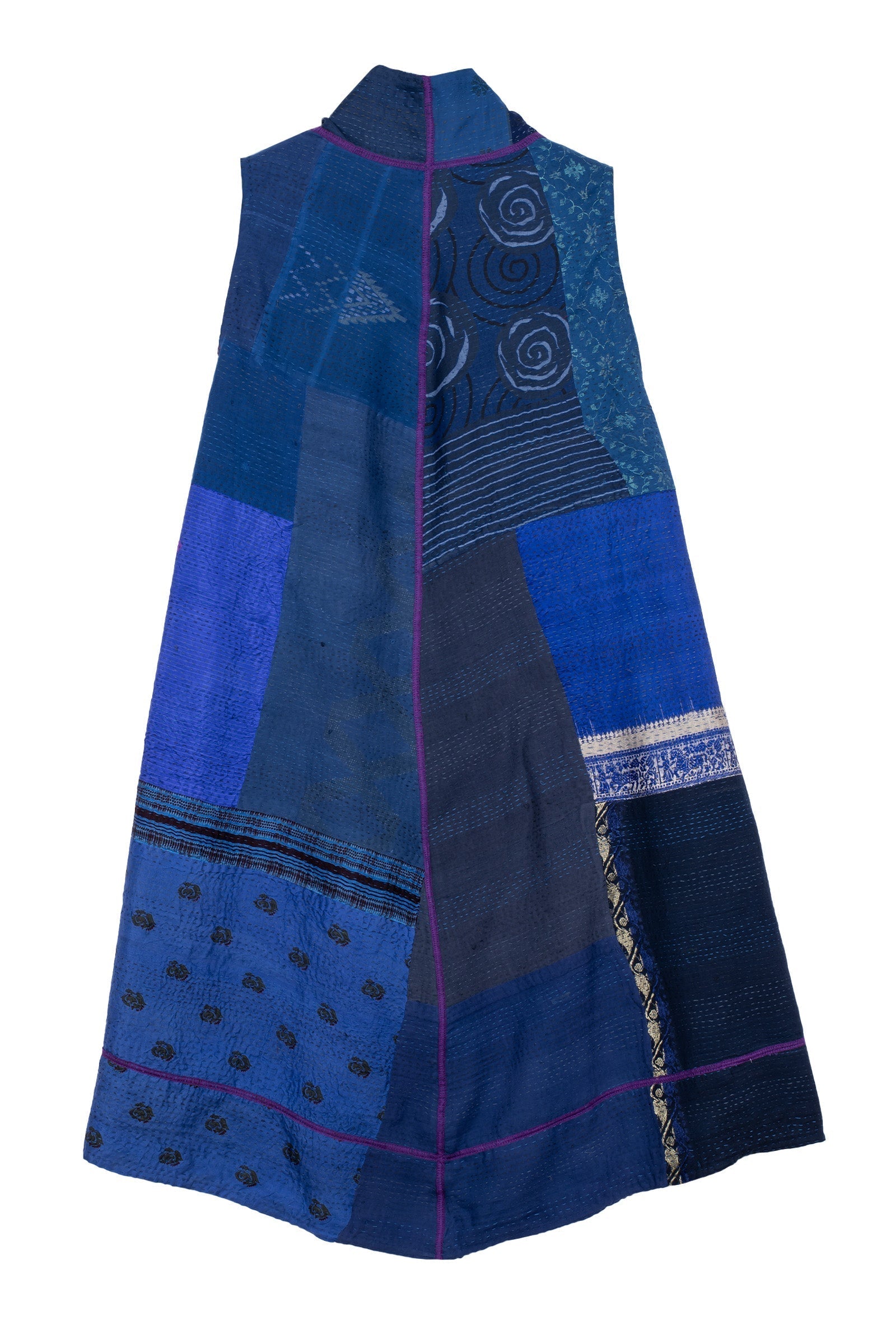 COTTON SILK SW PATCH KANTHA A-LINE VEST - ws2203-blu -