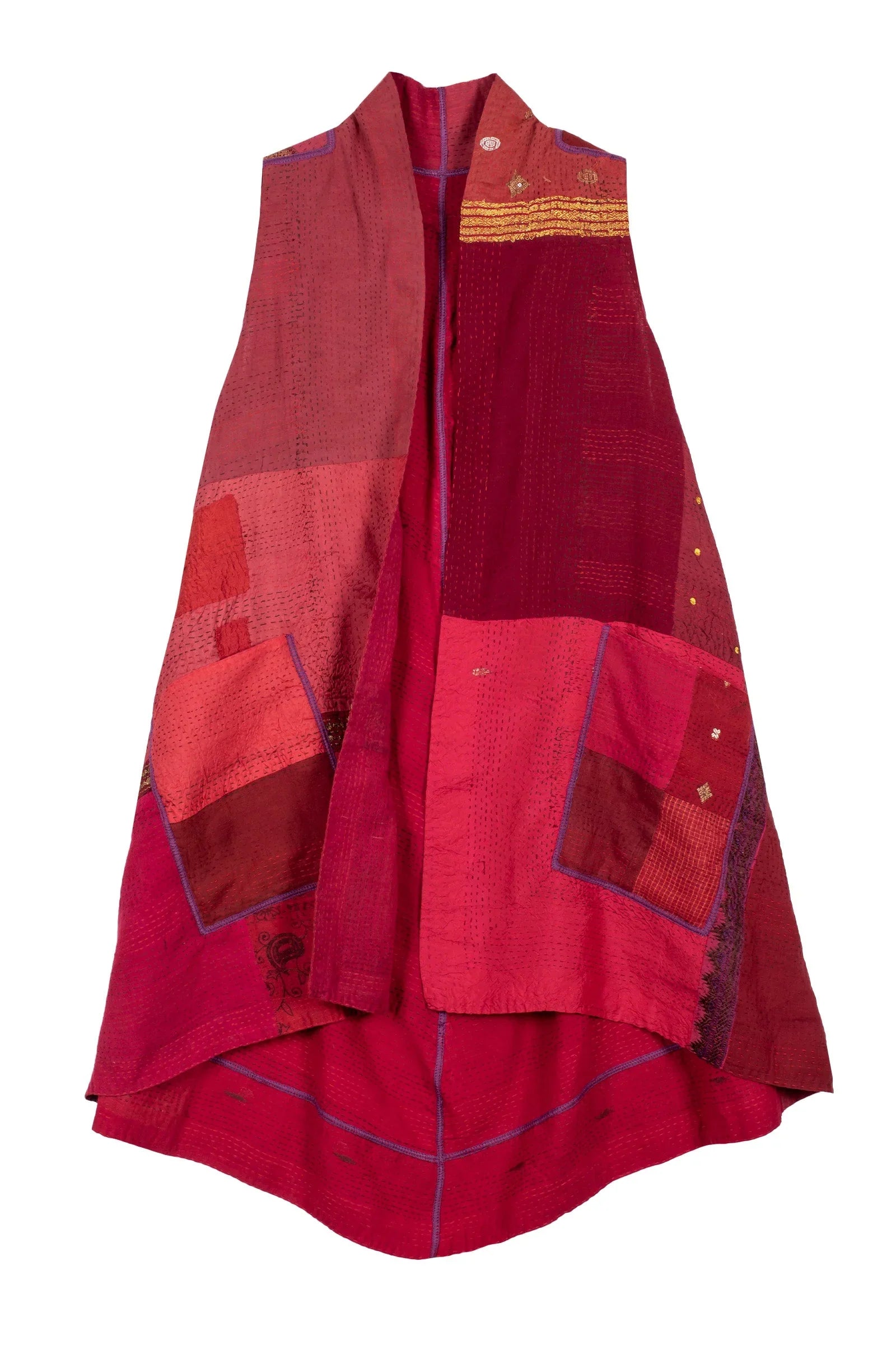 COTTON SILK SW PATCH KANTHA A-LINE VEST - ws2203-red -