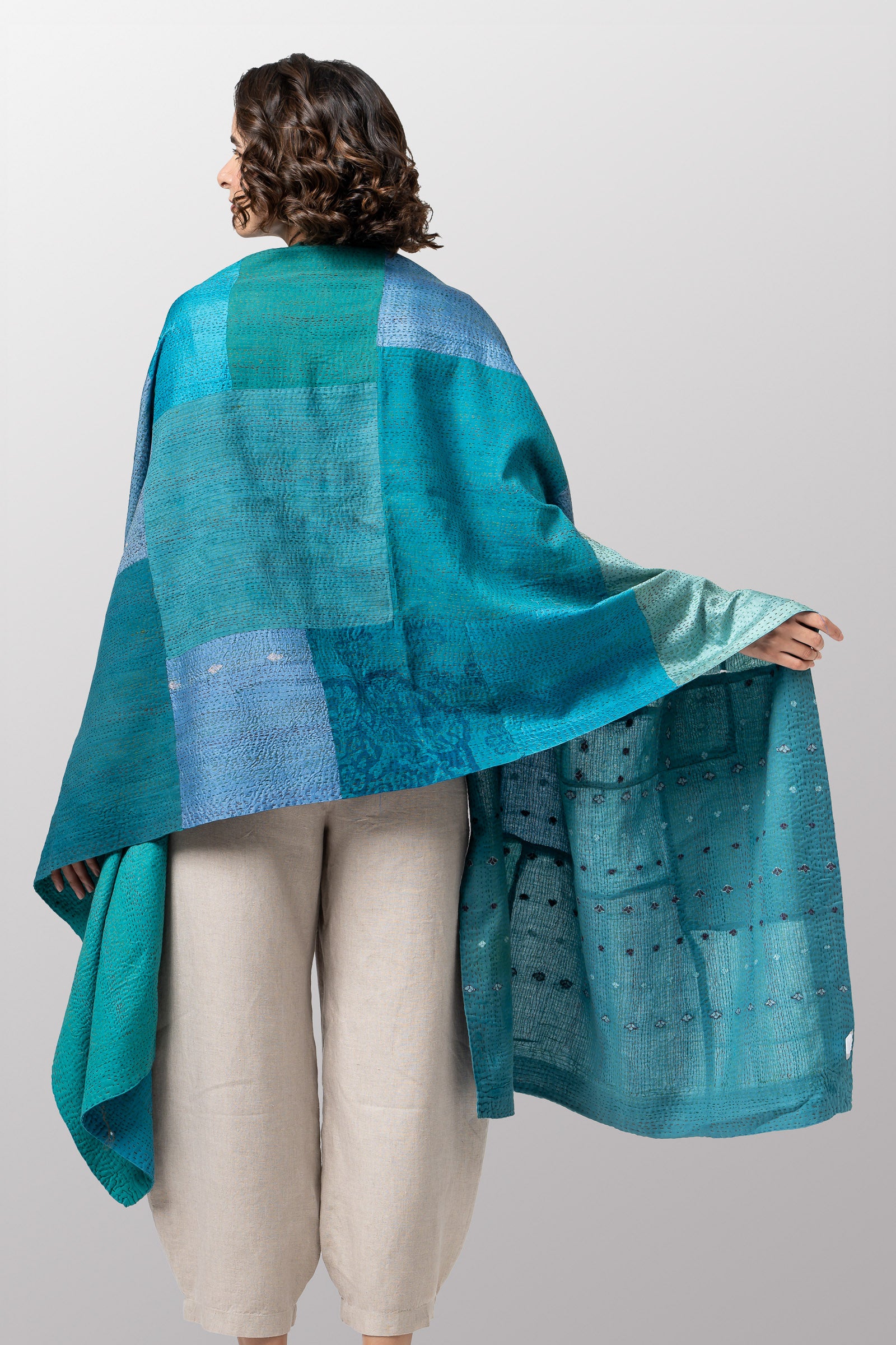 COTTON SILK SW PATCH KANTHA SHAWL LARGE - ws2803-tuq -