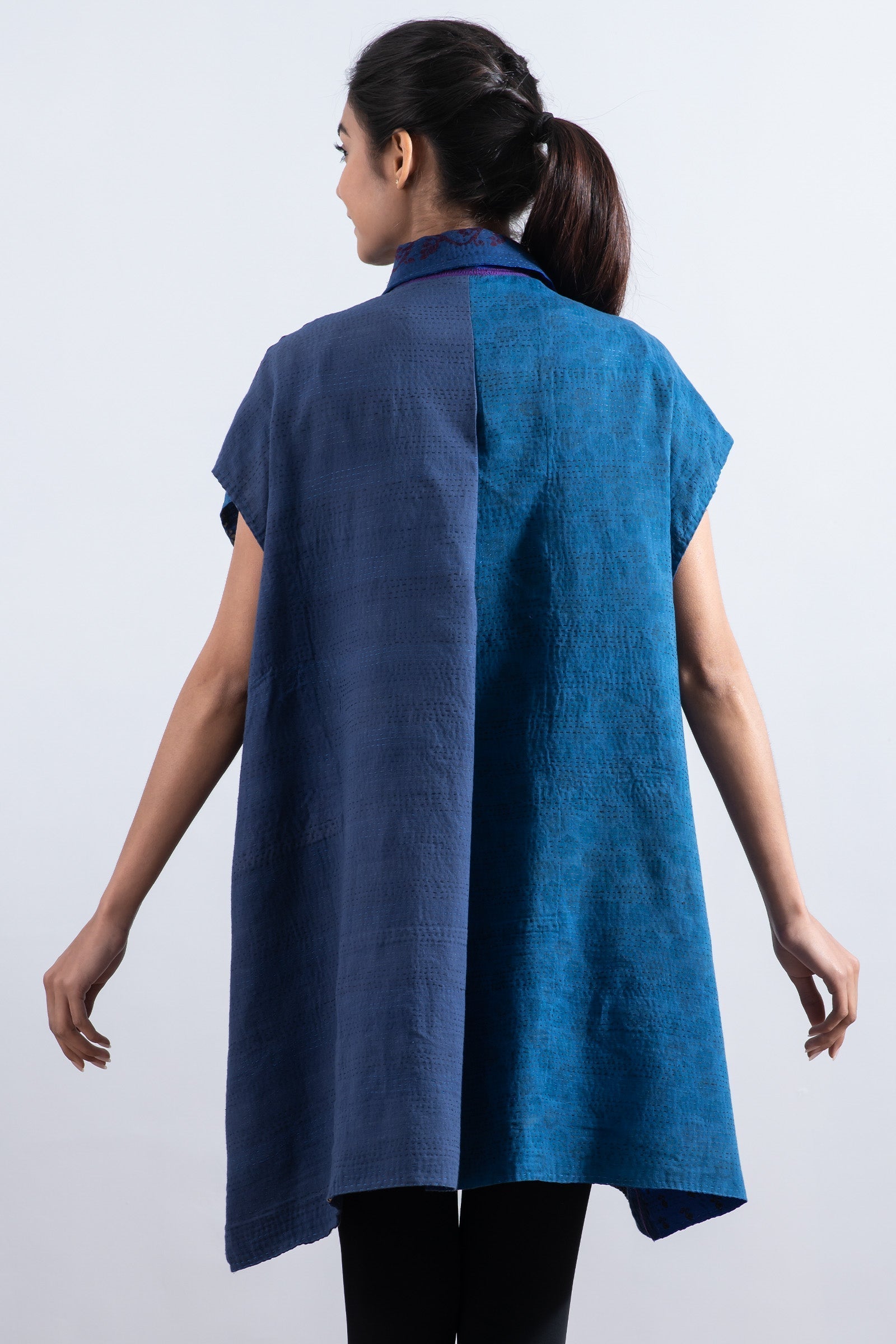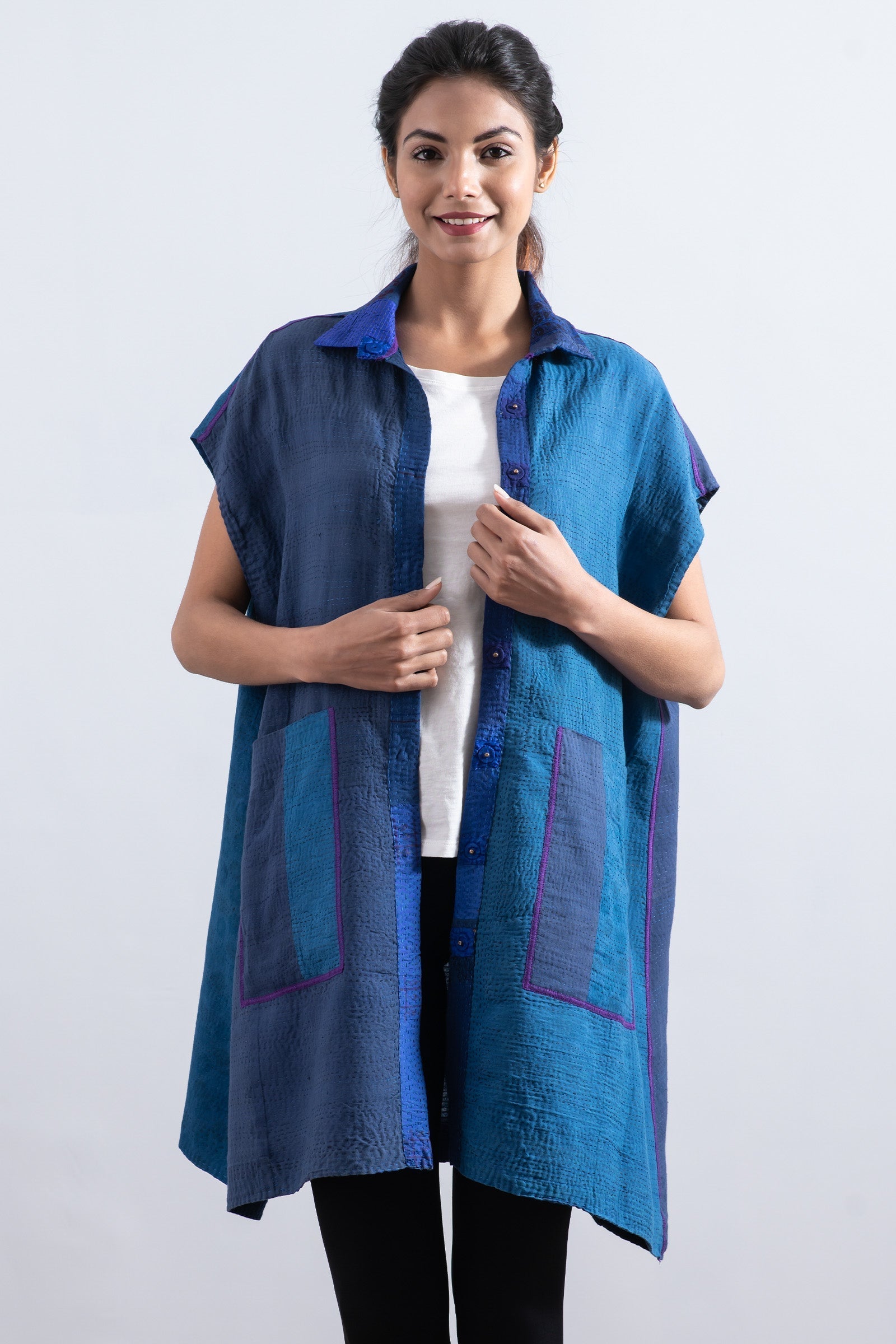 2 Layer Vintage Saris with Hand Stitches on Entire Garment - Reversible