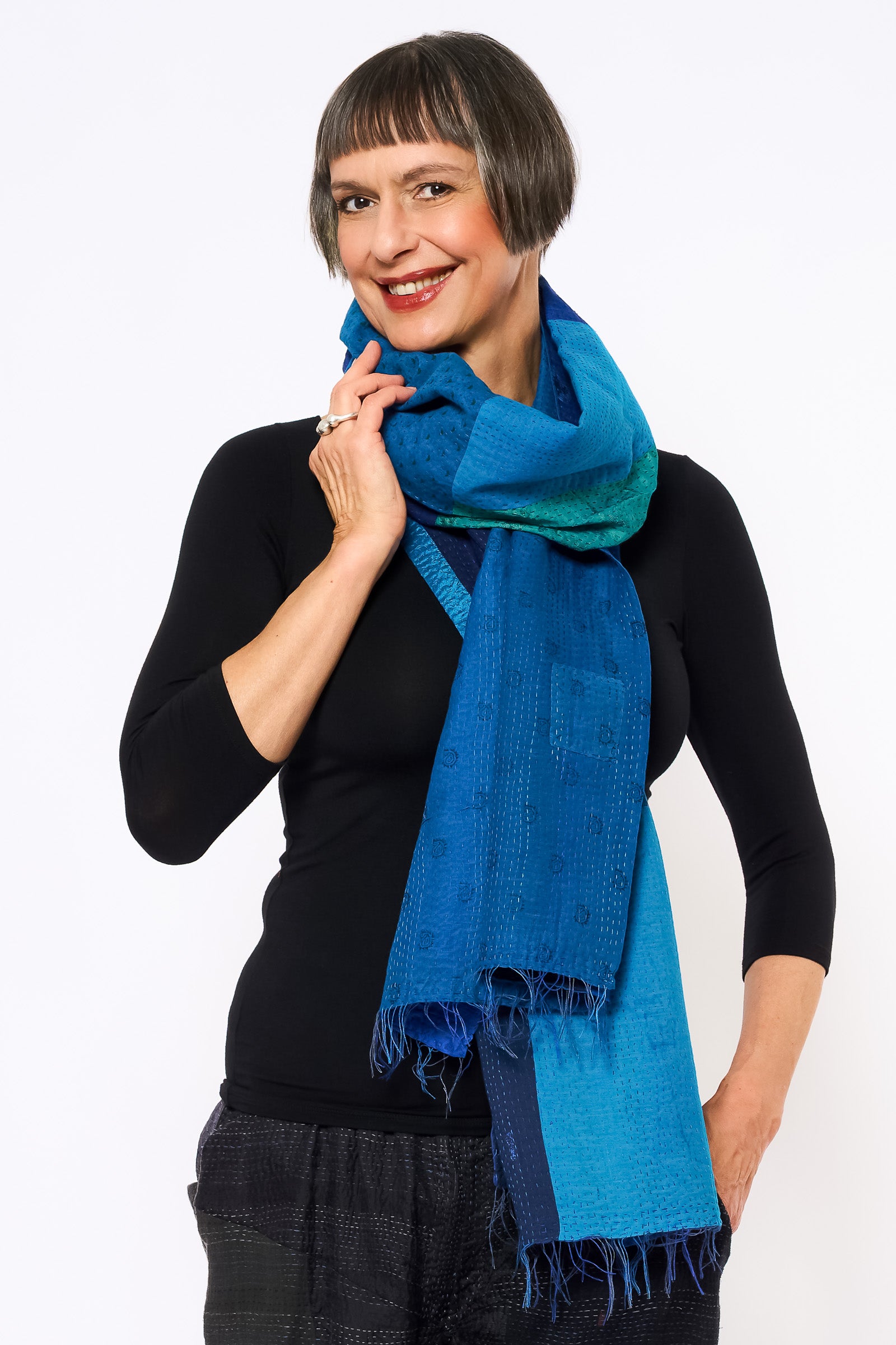 COTTON SILK SW PATCH OMBRE KANTHA SCARF STANDARD - wo2801-blu -