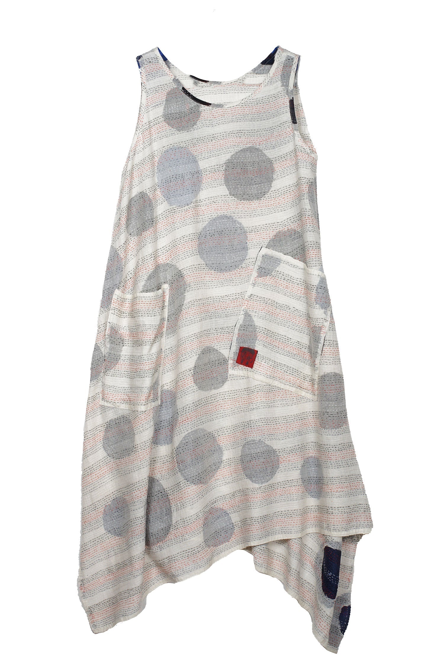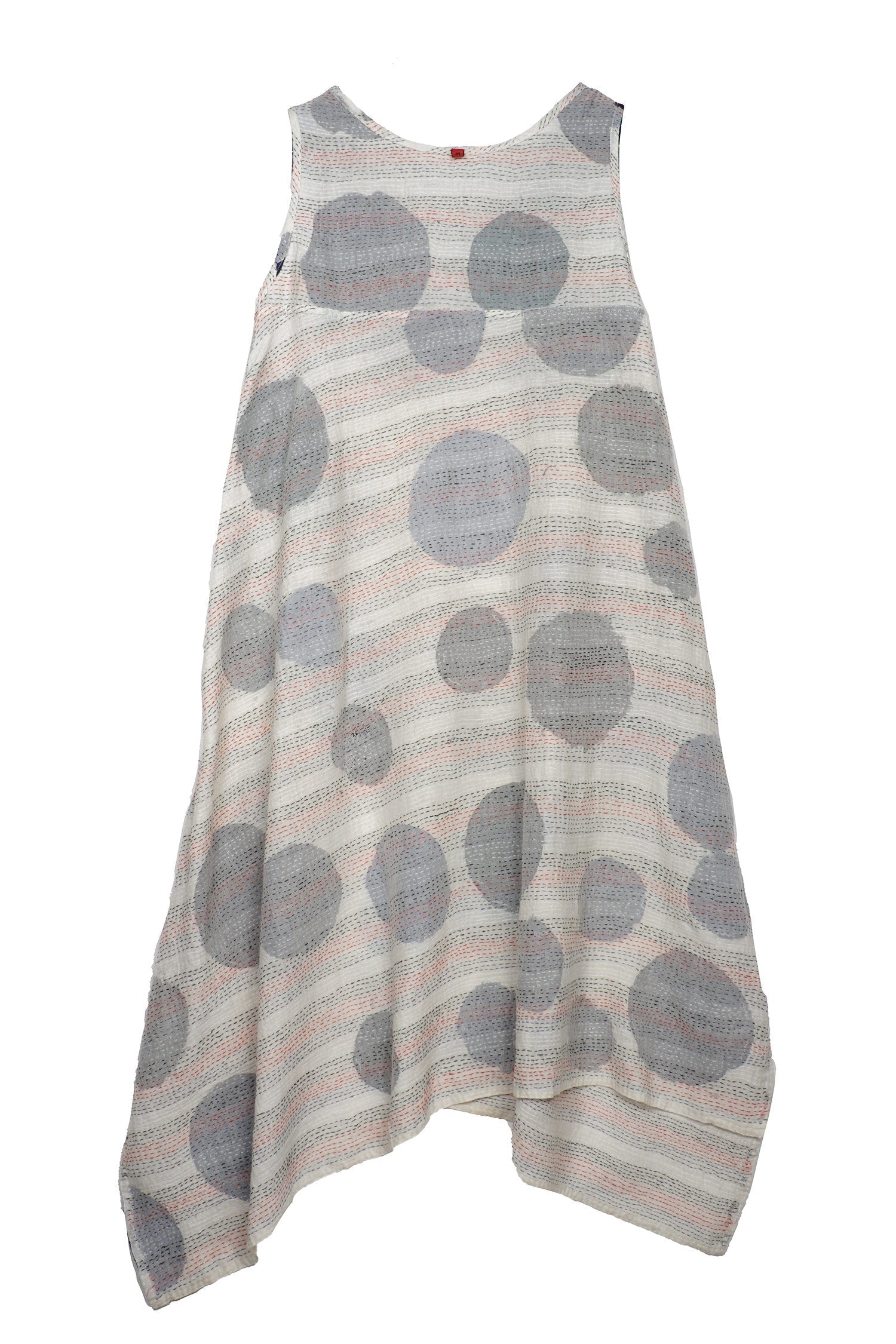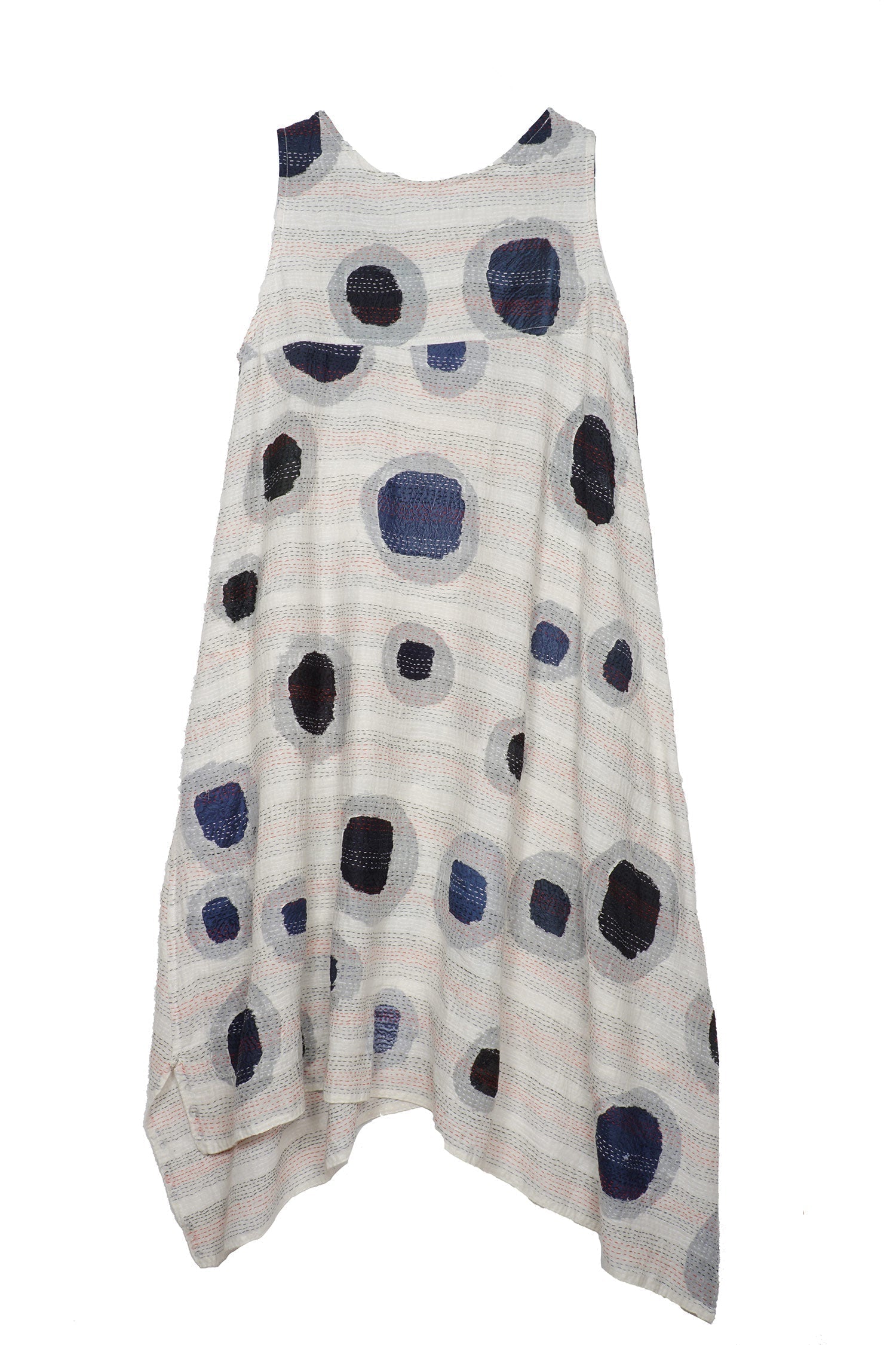 CUT OUT KANTHA POINTY HEM DRESS - ck2415-wht -