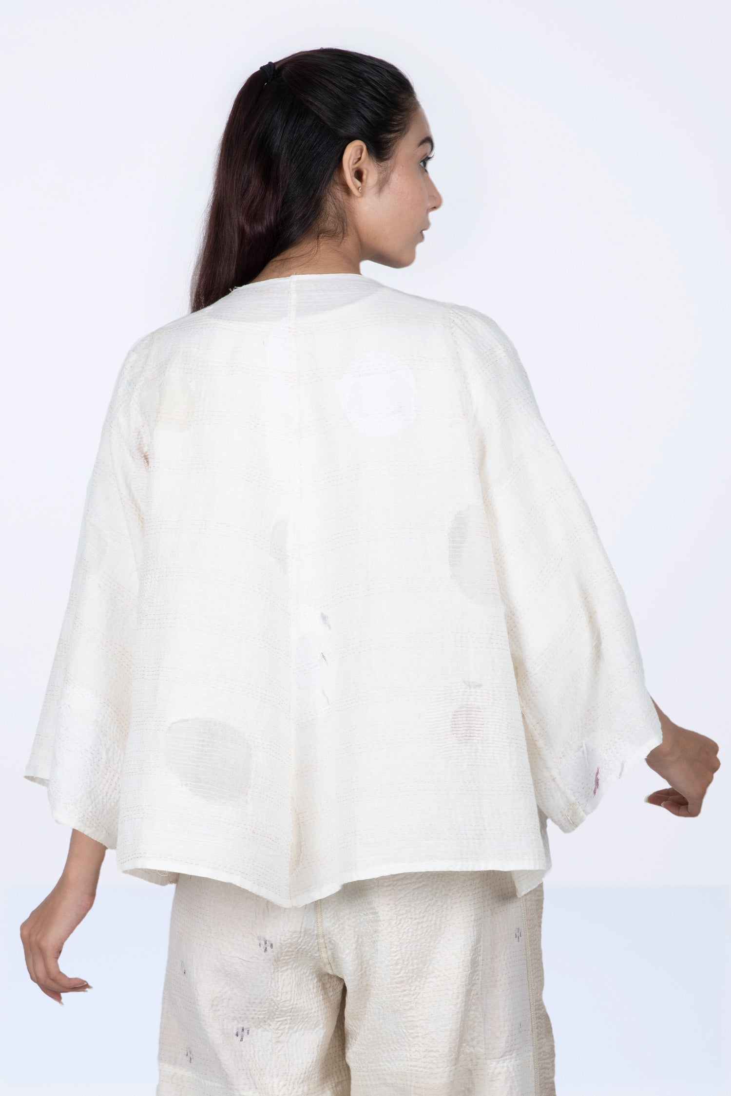 CUT THROUGH DOT AND HOLES KANTHA BELL SHAPE JKT - cd2048-ivy -