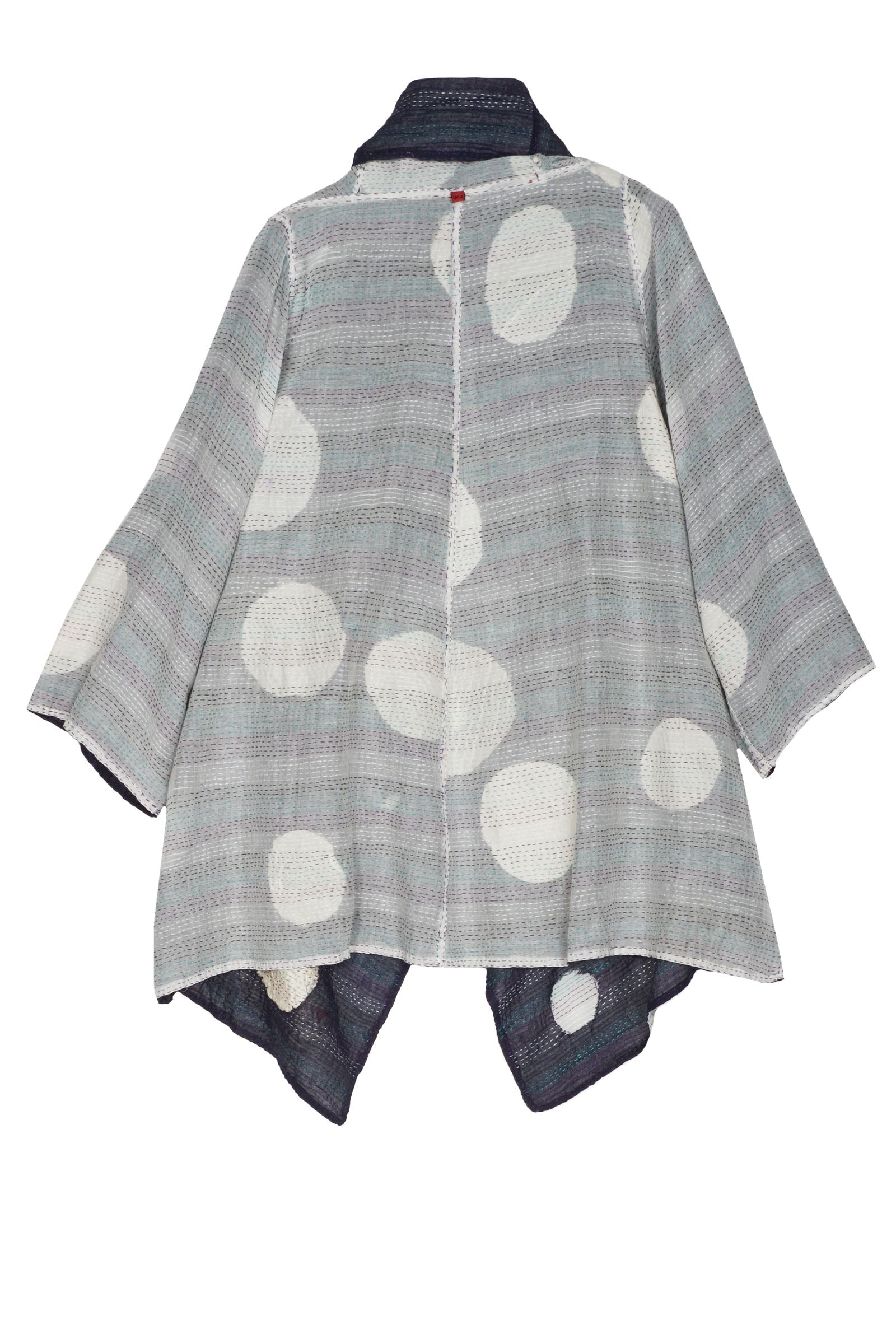 CUT THROUGH DOT AND HOLES KANTHA HOODED A-LINE JKT - cd2050-blu -
